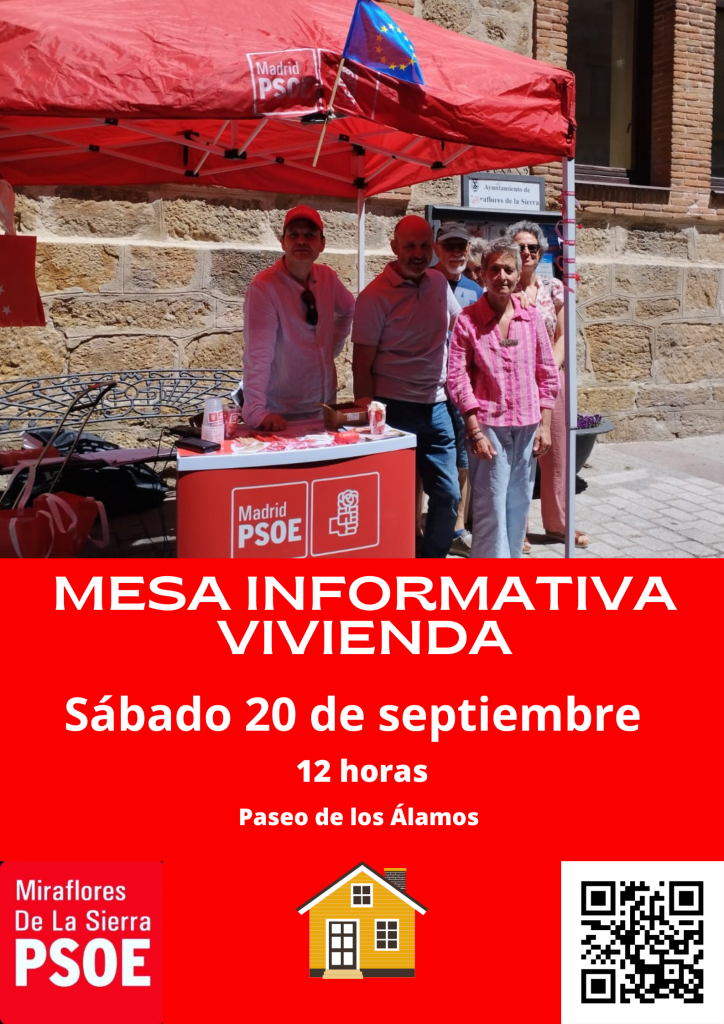 🗓️ El próximo sábado 20 de septiembre, a las 12 horas, el PSOE de Miraflores de la Sierra estaremos en el P° de los Álamos con una mesa informativa para hablar sobre vivienda, resolver dudas y escuchar vuestras propuestas. 👉 Te invitamos a acercarte, conversar y compartir tus inquietudes. 👉🏻Porque tu voz cuenta y juntos […]