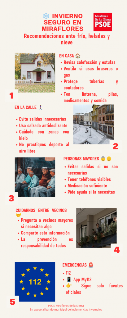 Ante la llegada de bajas temperaturas, heladas y posibles nevadas, desde el PSOE de Miraflores de la Sierra queremos reforzar la información trasladada por el Ayuntamiento a través del bando municipal de inclemencias invernales.